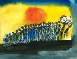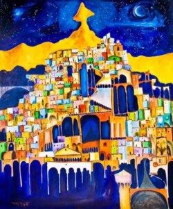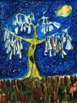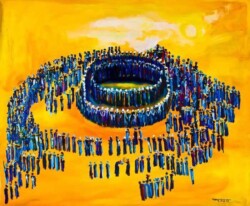 Eserlerinde hayvan, ağaç figürleri ve portrelerin yanı sıra hacı kapıları ve dilek ağaçları gibi Türk ritimleri, Türk kültür öğeleri görülmektedir.